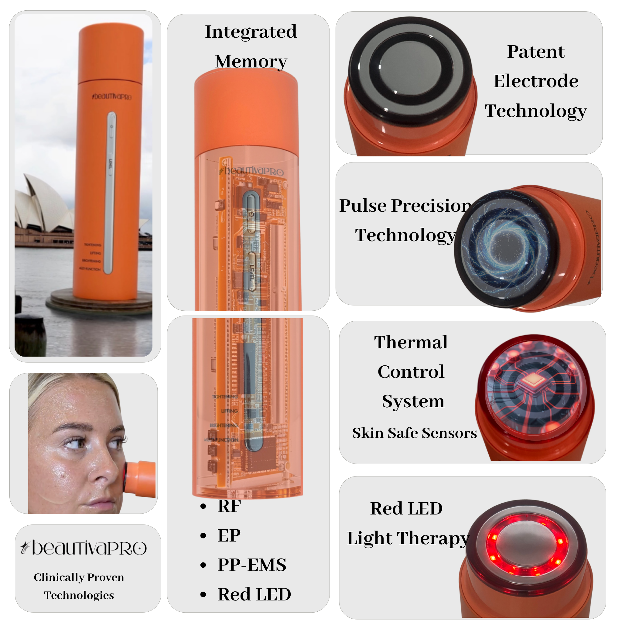 - BeautivaPRO rejuvenates skin with Radio Frequency, EMS, Red + Infrared Light, and Electroporation to firm, tone, and restore elasticity.